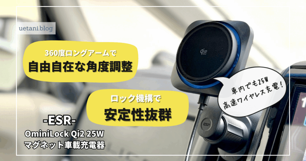 ESR OminiLock 25Wマグネット車載充電器レビュー|車でも高速ワイヤレス充電!360度回転ロングアームと改良されたフック機構で使い勝手抜群!