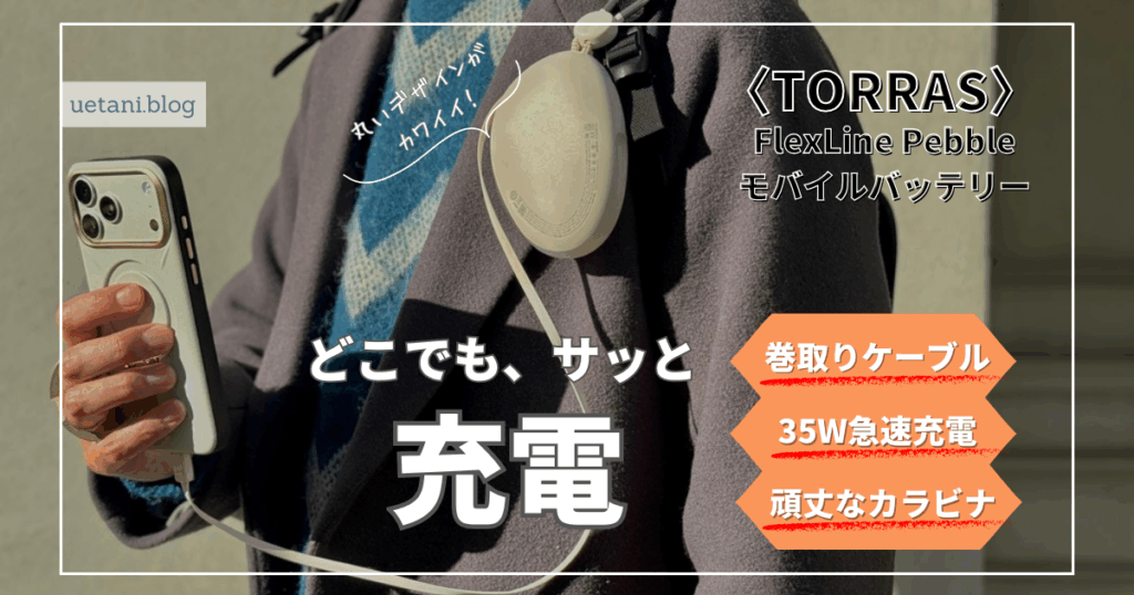 TORRAS FlexLine Pebble モバイルバッテリーレビュー|巻き取り式ケーブル・カラビナ・35W急速充電・10000mAh大容量のモバイルバッテリー
