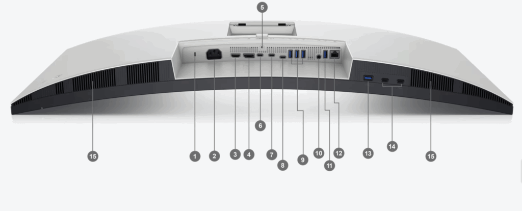 | ・端子 | ・HDMI2.1(HDCP1.4および2.2) ・DisplayPort 1.4(HDCP 1.4および2.2) ・Thunderbolt™ 4ダウンストリーム ポート(15W)(デイジー チェーン接続用) ・Thunderbolt™ 4アップストリーム ポート(ビデオ+データ) ・DisplayPort 1.4のAltモード、最大90Wの電力供給電源端子(アダプターレス)×1 ・USB Type-Cアップストリーム ポート(データ専用)(SuperSpeed USB 10 Gbps、USB 3.2 Gen 2) ・3 USB Type-Aダウンストリーム ポート(SuperSpeed USB 10 Gbps、USB 3.2 Gen 2) ・音声ライン出力 ・USB Type-Aダウンストリーム ポート(SuperSpeed USB 10 Gbps、USB 3.2 Gen 2) ・Ethernet LANポート(RJ45)、2.5GbE ・USB Type-Aダウンストリーム ポート(SuperSpeed USB 10Gbps、USB 3.2 Gen 2) ・2 USB Type-Cダウンストリーム ポート(SuperSpeed USB 10 Gbps、USB 3.2 Gen 2) |