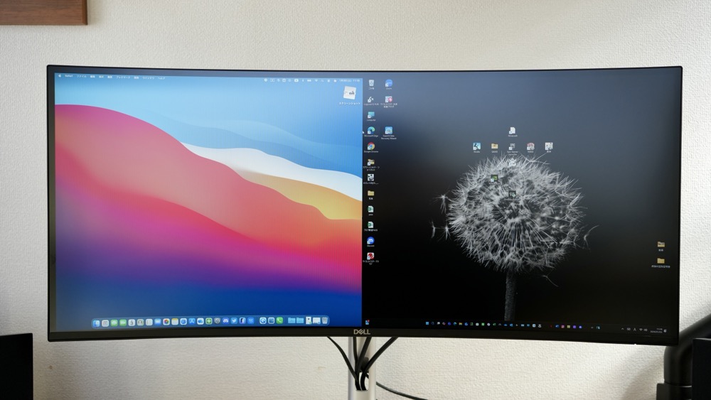 DELL U3425WEの「1900R」は曲面モニターの中でもカーブが緩やかなので、不自然に画面が歪まず、とても見やすいです。