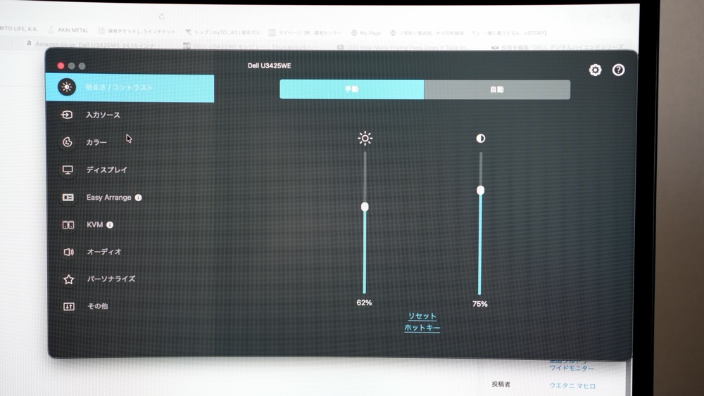 モニター背面の物理ボタンでもモニター設定はできますが、操作しづらいので「Dell Display Manager」はダウンロード必須ですね!