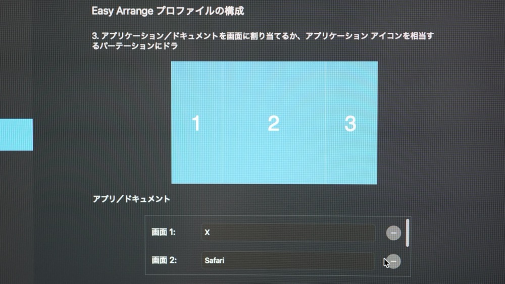 画面分割はWindowsが優秀ですが、MacBookではデフォルトで横の3分割が設定になかったので、これはありがたいですね。
