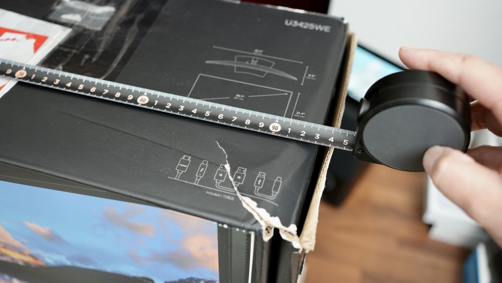 34インチのウルトラワイドだけあって、外箱の横幅が90㎝以上もあり、かなり大型!