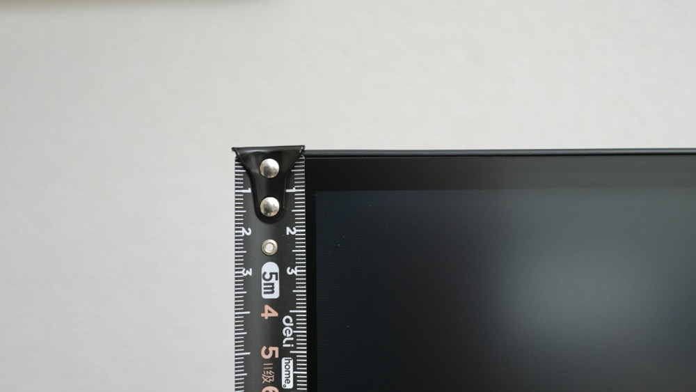 左右と上部・下部のベゼルは、それぞれ約10mmと薄いほうですが、極薄ではありません。