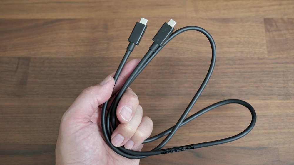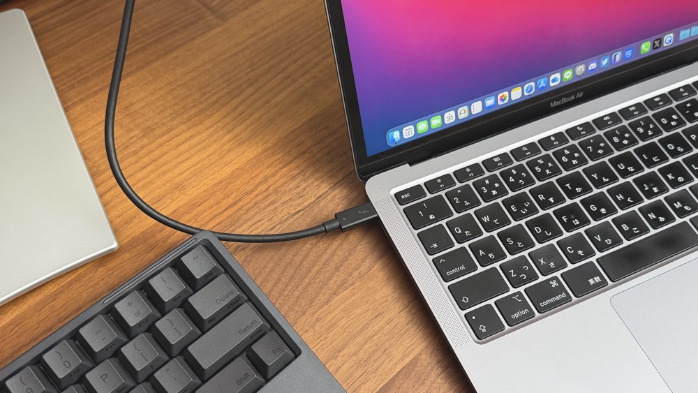 ウエタニ一通りケーブルは付属していますが、Thunderbolt4のケーブルが1mと短いので、長いケーブルを使いたい人は、別途で規格対応のケーブル購入をおすすめします!