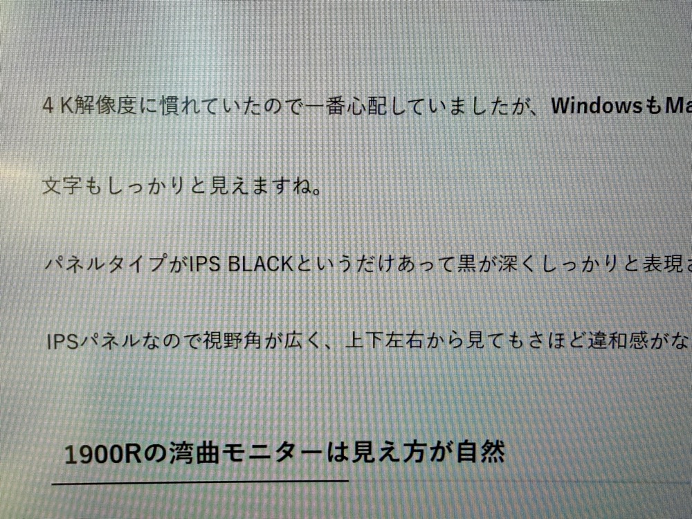 1900Rの曲面モニターは見え方が自然