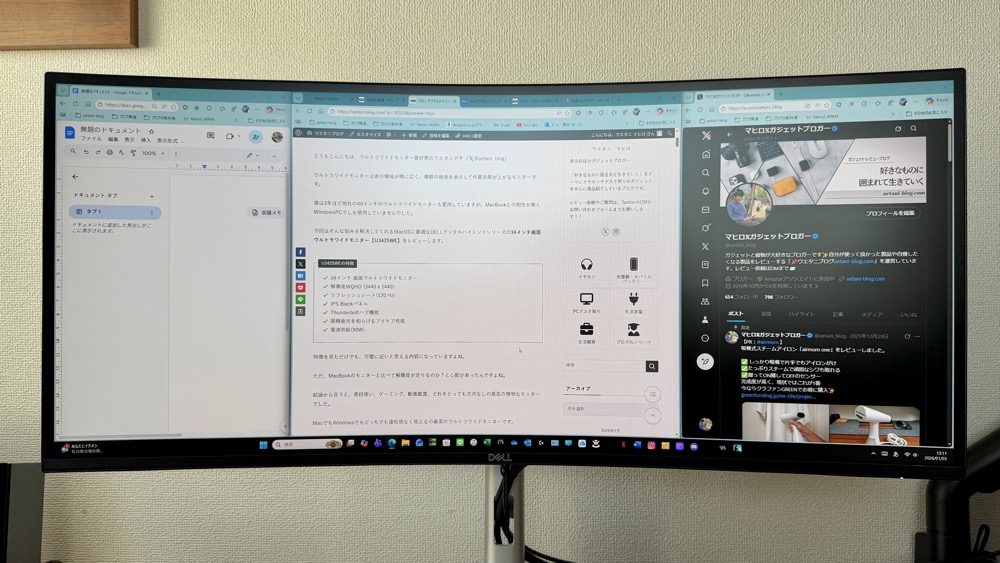 では、実際にDELL U3425WEを使ってみた感想をレビューしていきます。