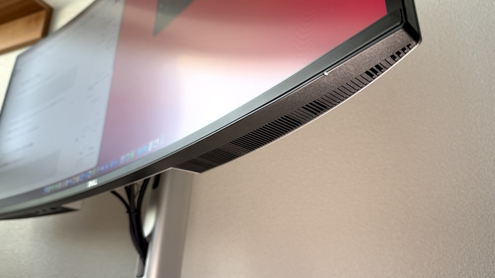 DELL U3425WEには、下部に5W×2の内蔵スピーカーが搭載されています。