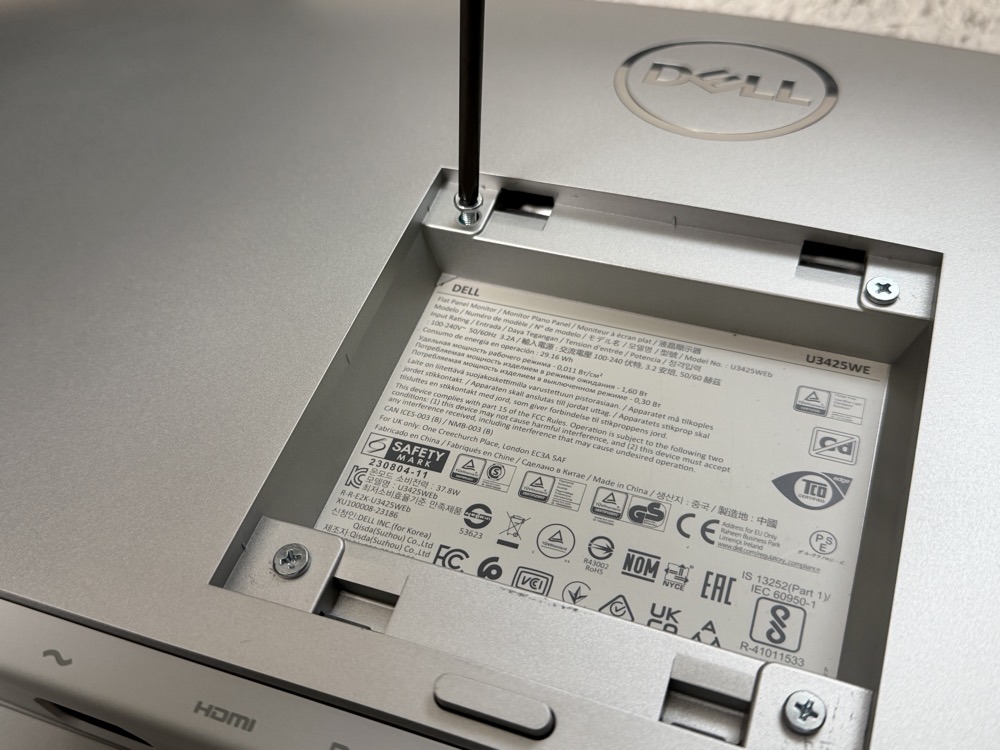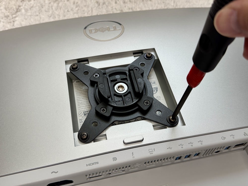 DELL U3425WEは、VESAマウント100×100に対応しているのでモニターアームも取り付けられます。