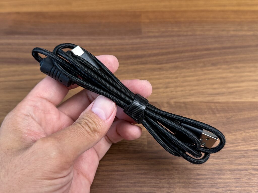 有線ケーブルと、高速無線接続の2.4GHz接続レシーバーが同梱されています。