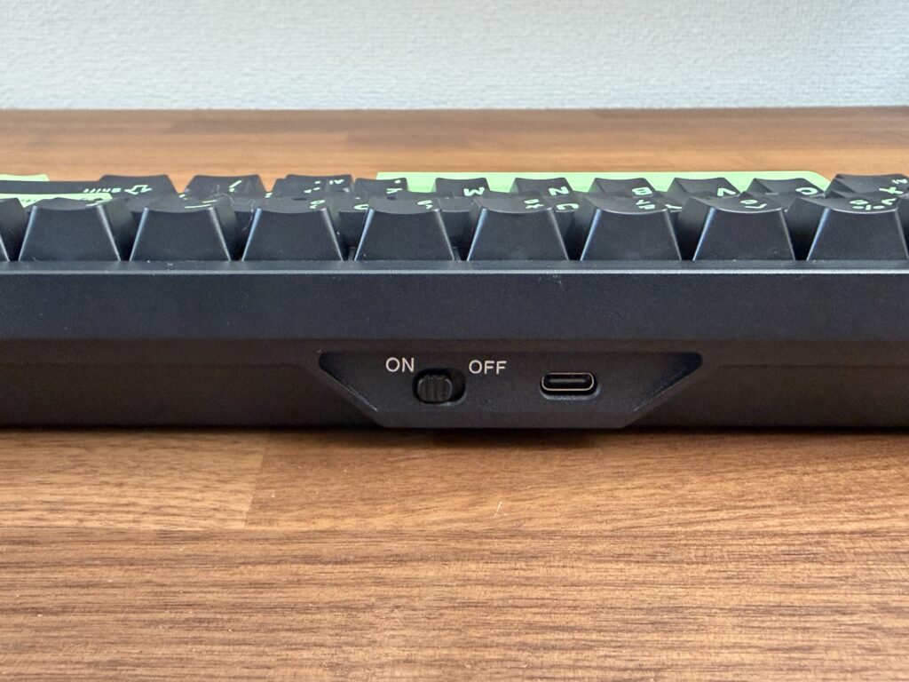 上部には有線・無線の切り替えスイッチと、有線接続のUSB-C端子が配置されています。
