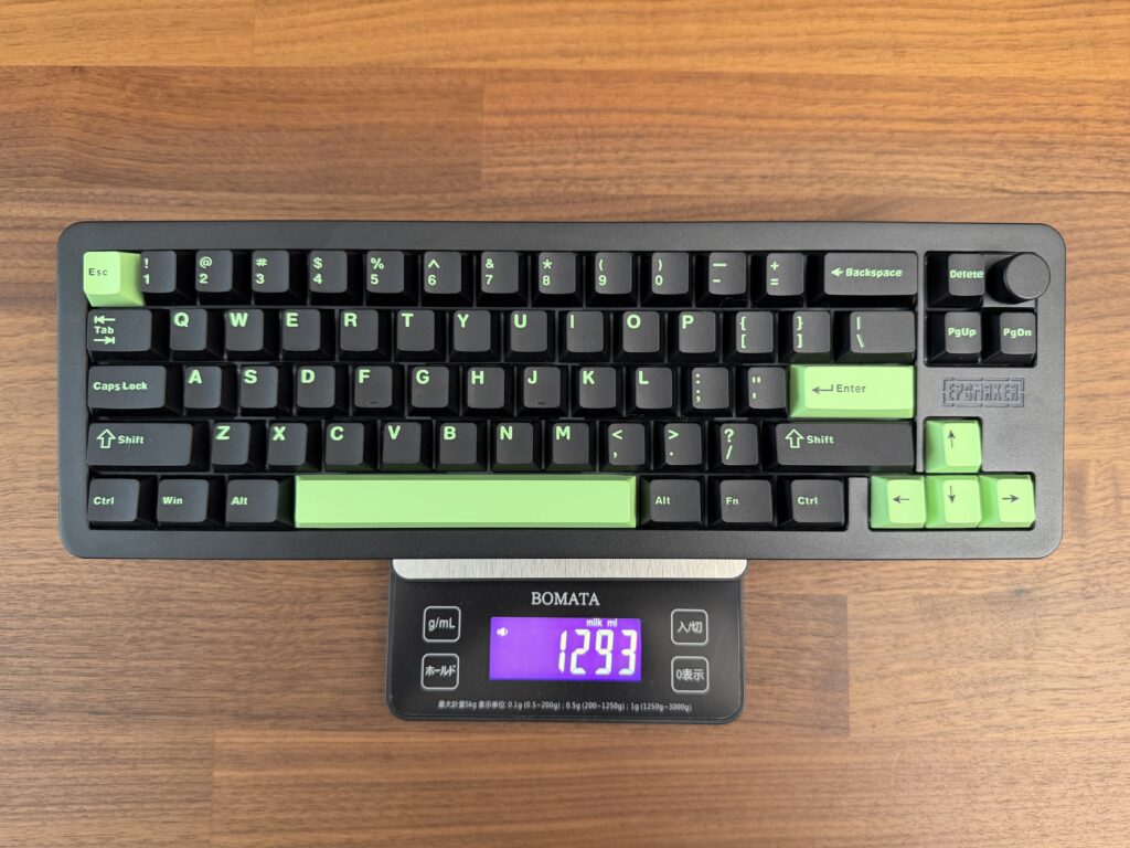 プラスチックではないので高級感がとてもありますが、その分実測で1,293gと重さもかなりあります。