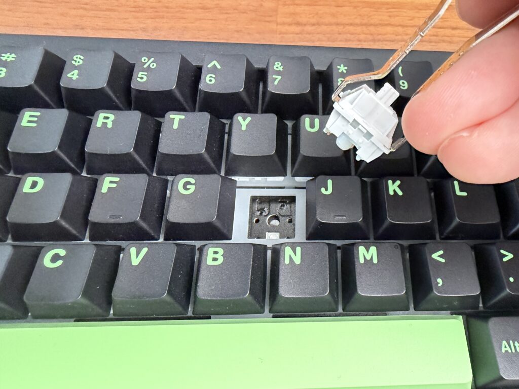 ホットスワップ対応なので、好みの別のキースイッチと交換もできます。