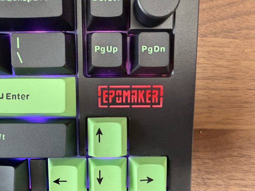 EPOMAKERのロゴ部分は独立してRGBライトのON/OFFなど、パターンを変更できます。。