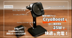同メーカーの3in1ワイヤレス充電器(25W)は下記の記事でレビューしているので、参考にしてみてください。