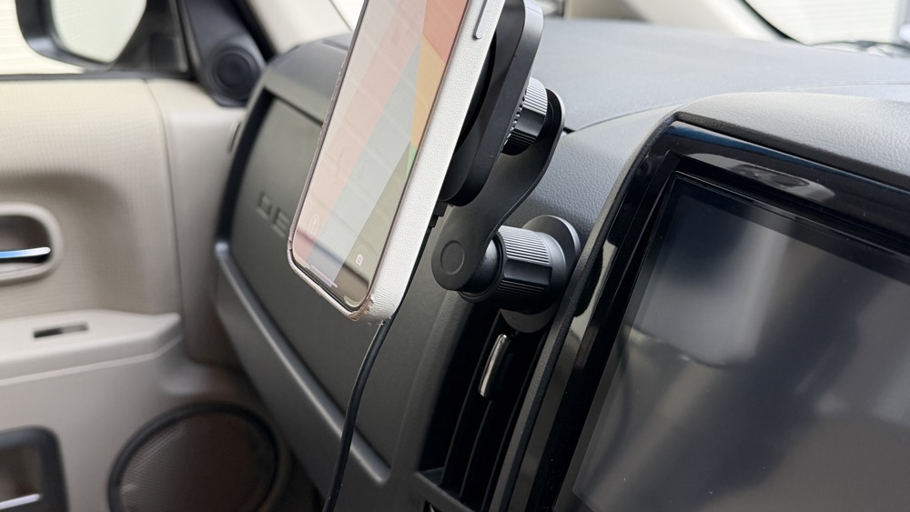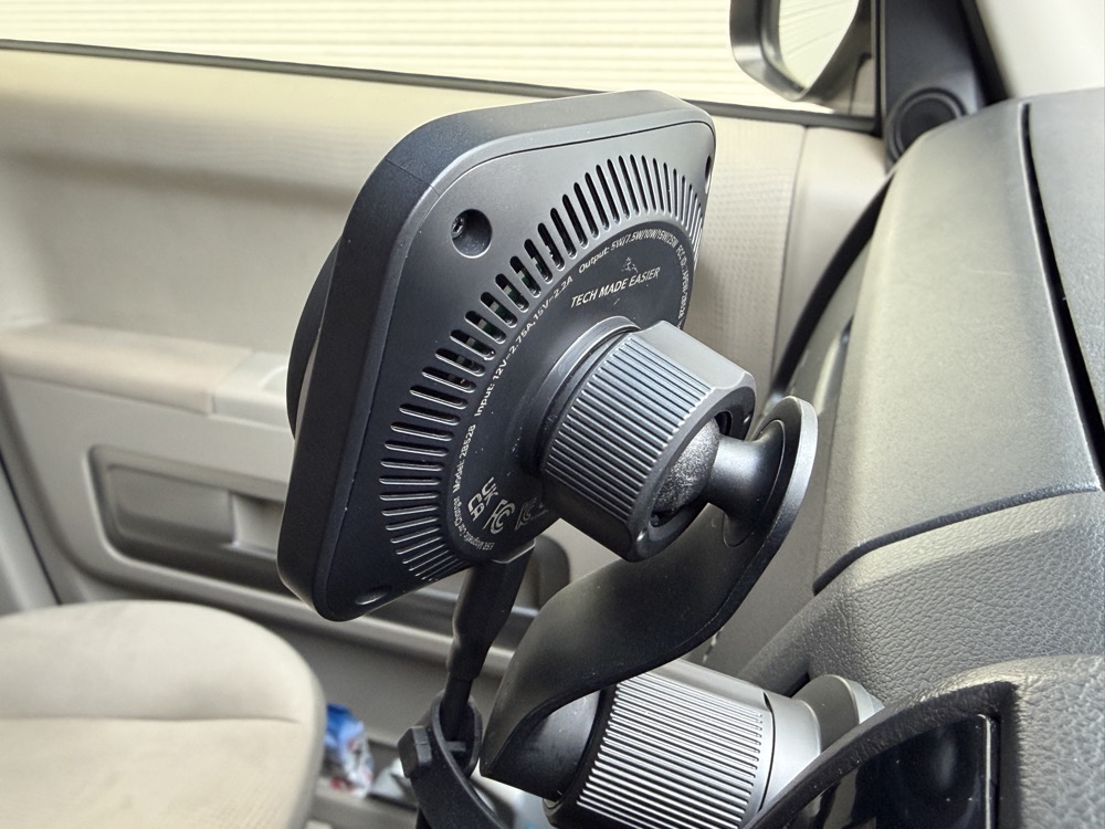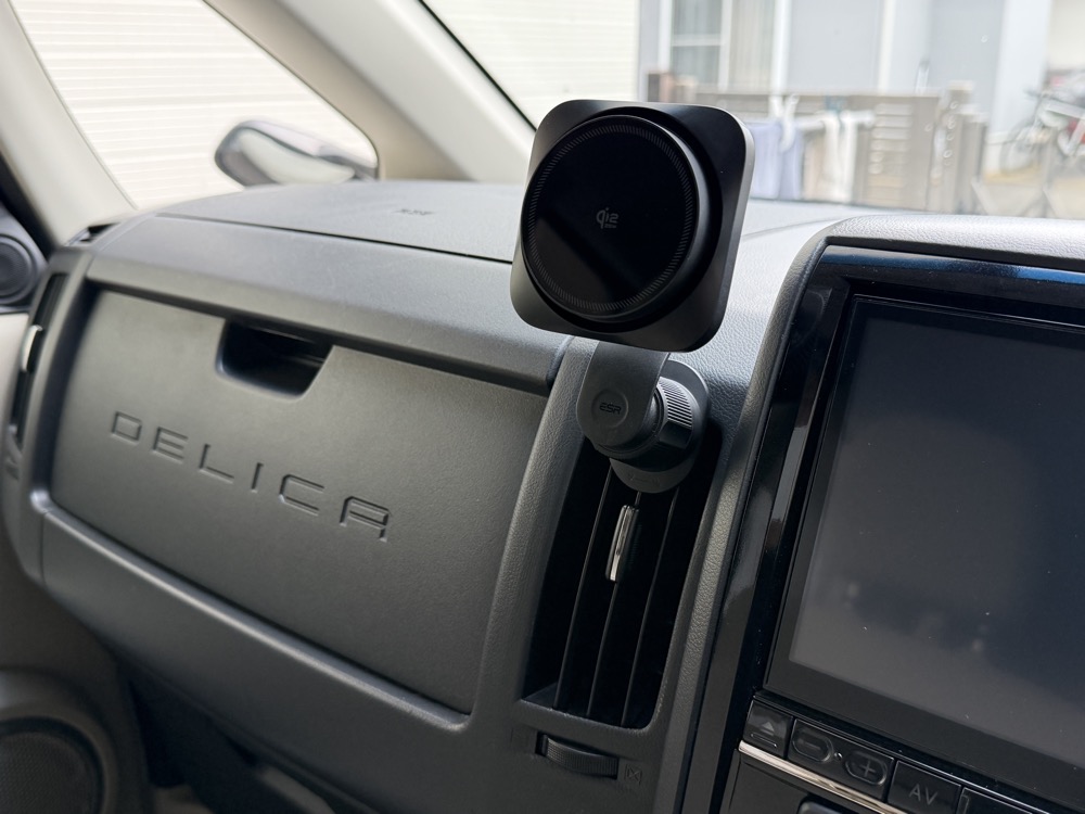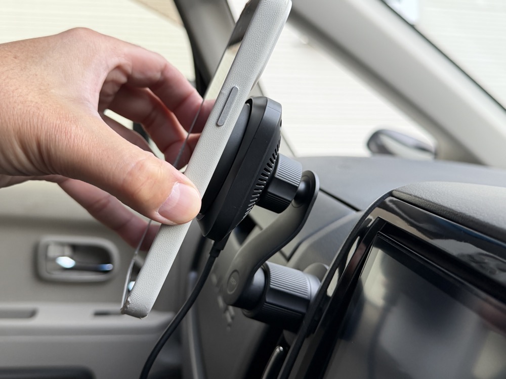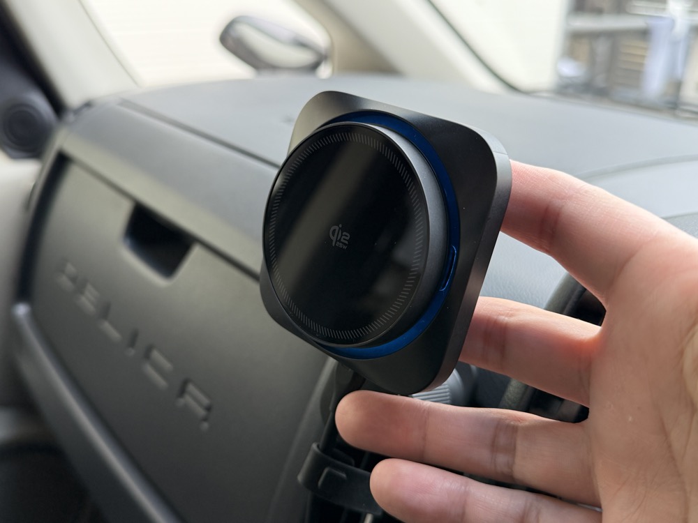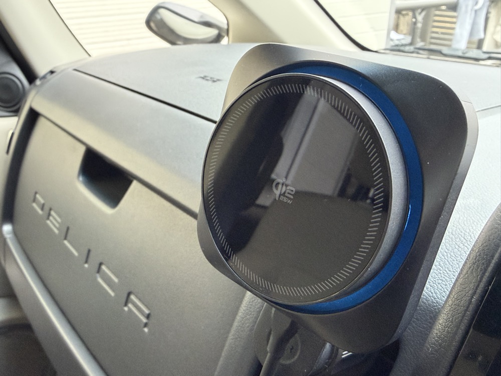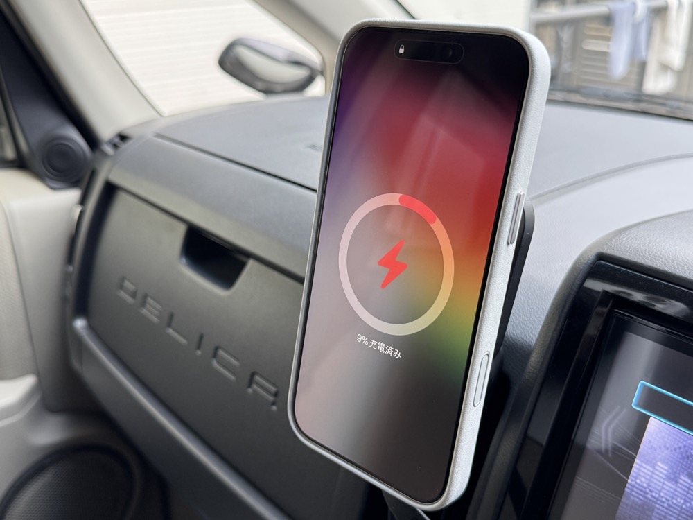 車の中でも、Qi2.2(25W)高速充電できるのは本当に快適です。