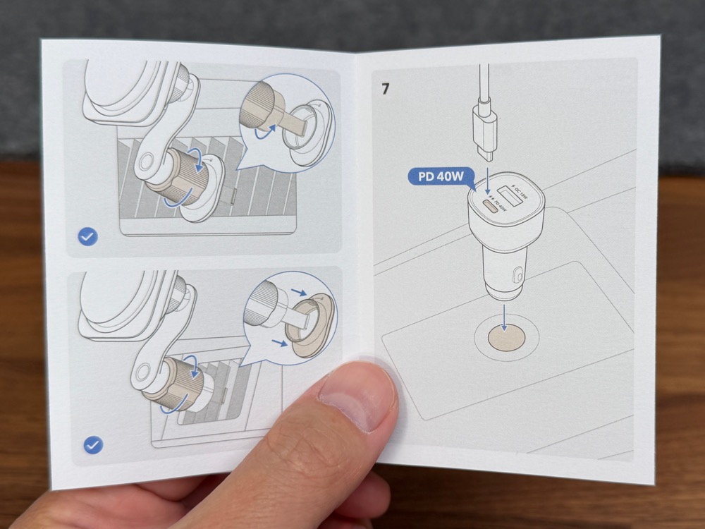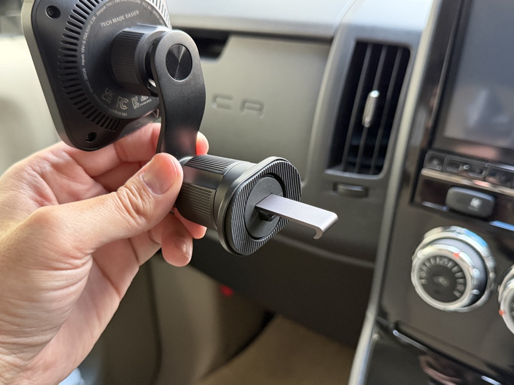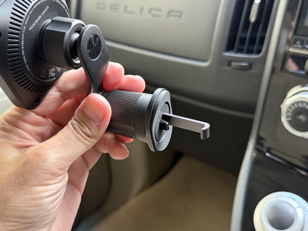 それでは、実際車に取り付けながら【ESR OminiLock 25Wマグネット車載充電器】を詳しくレビューしていきます。