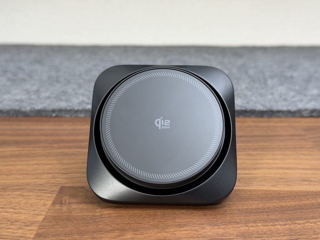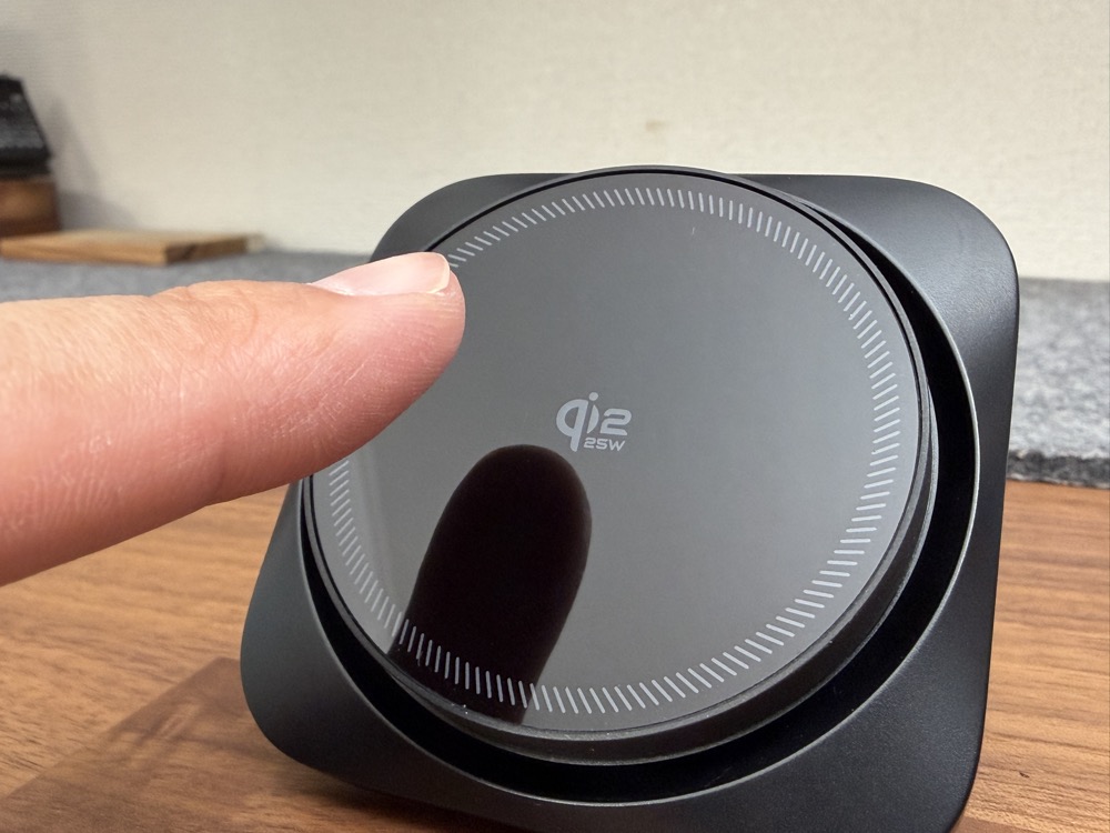 簡単に言うと、Qi2(25W)充電部の周りにファンが付いており、充電中の熱を冷やしてくれるということ。