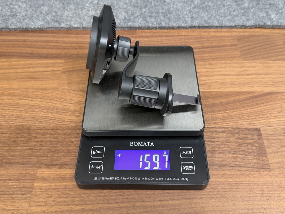 重量はロングアームを取り付けた状態で、実測159.7gでした。