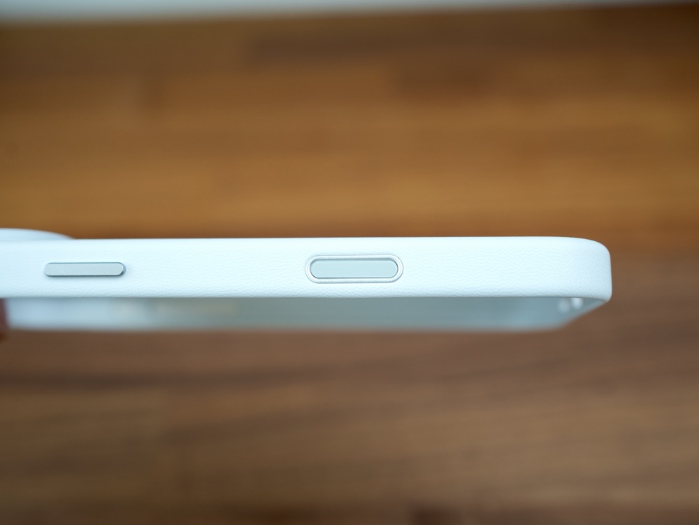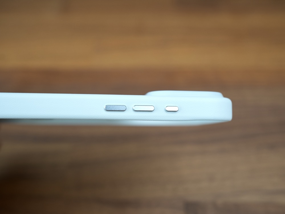 左側面には、「アクションボタン」と「ボリュームボタン」があり、シルバーの色味がかっこいいです。