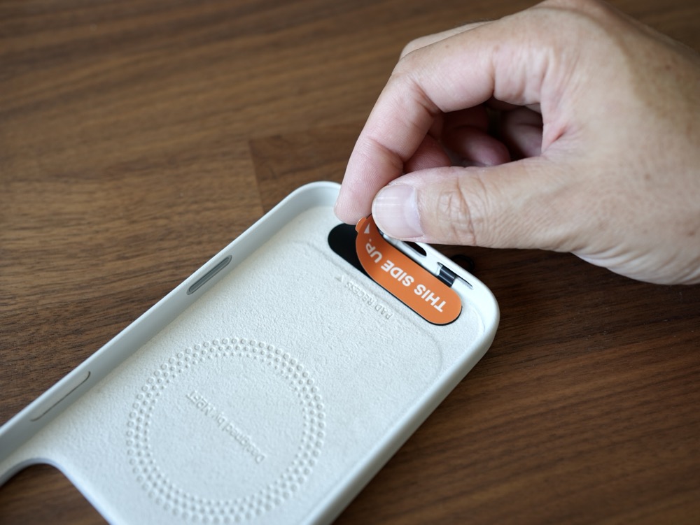 取り付け方法は簡単で、デュアルかシングルのフックをケースに仕込み、iPhone本体をはめるだけ。