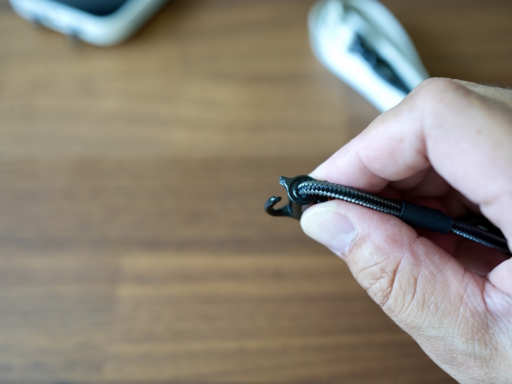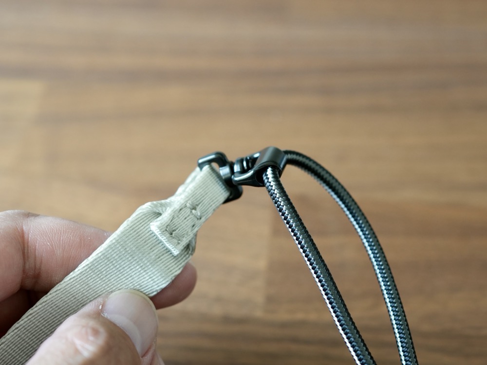 ストラップ側のフックは、軽くつまむだけで簡単に開きます。