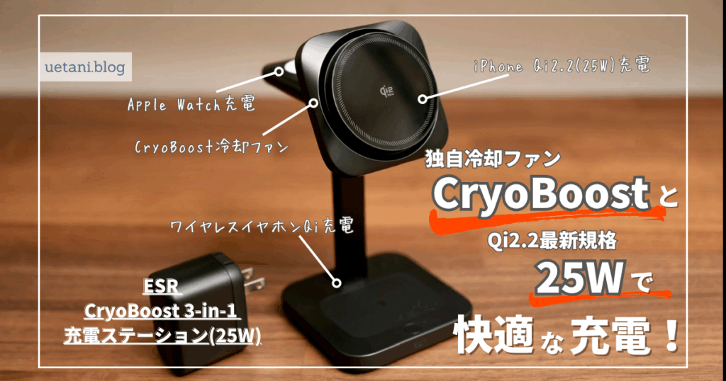ESR CryoBoost 3-in-1 充電ステーション(25W)レビュー|CryoBoost冷却ファンと無線25W充電は新型iPhoneユーザーの最適解!